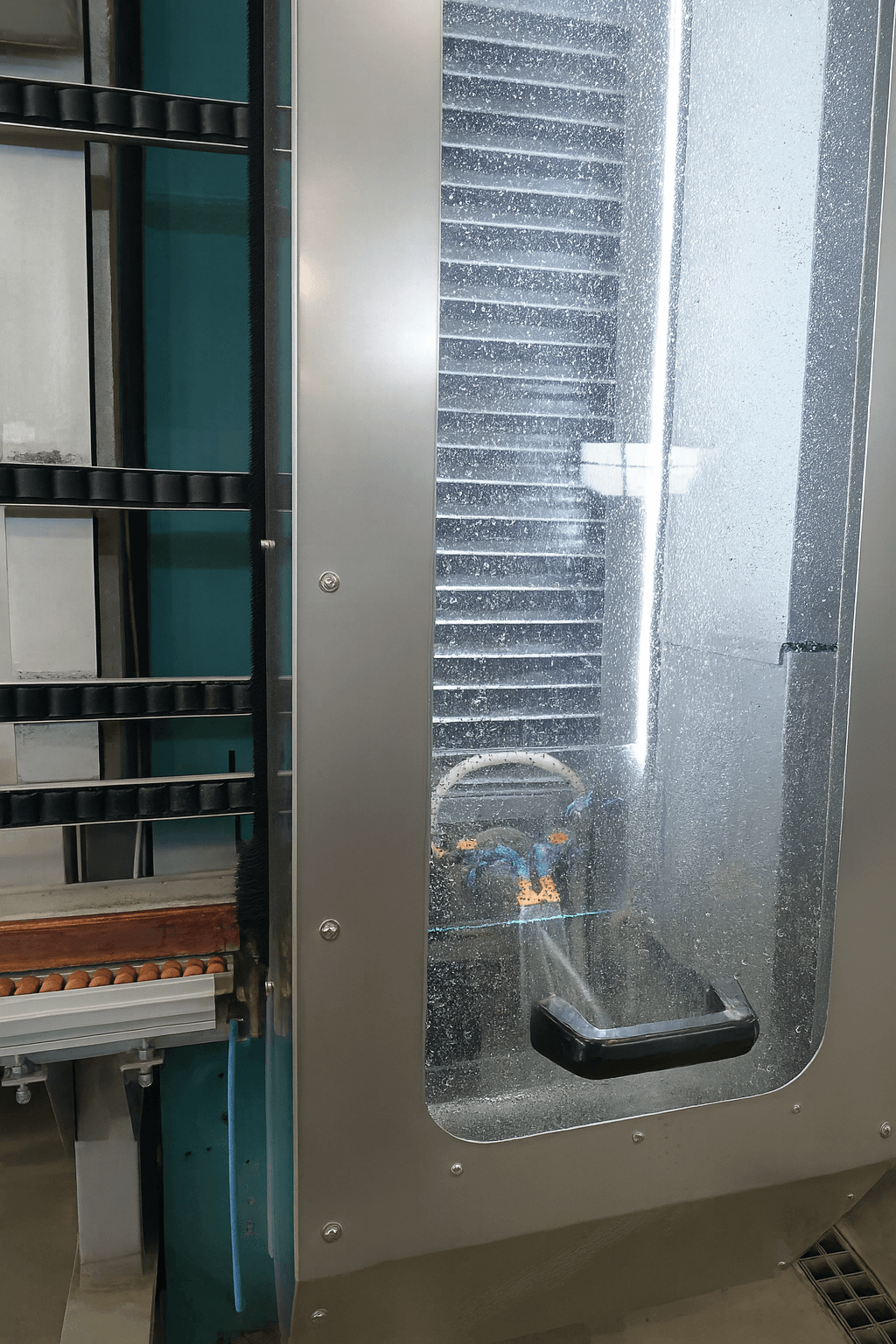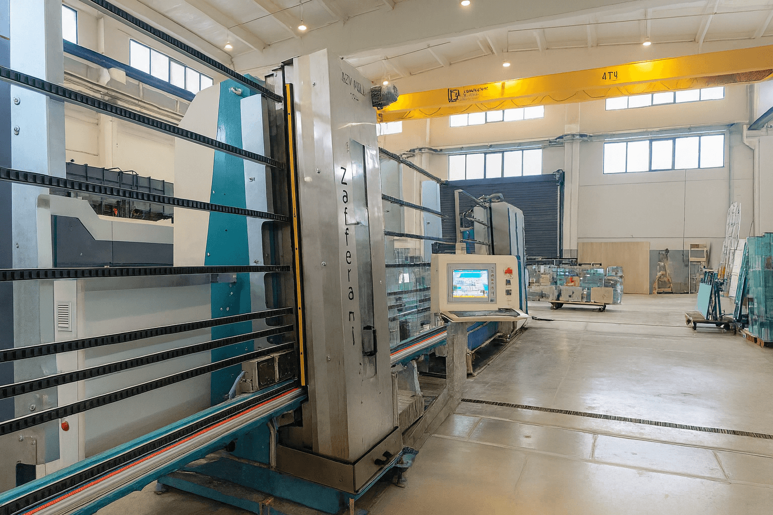 Το εργοστάσιό μας είναι εξοπλισμένο με ειδικά μηχανήματα για συγκολλήσεις υαλοπινάκων με μεμβράνη EVA (Brank RC1) αλλά και με ειδικό θάλαμο Autoclave.